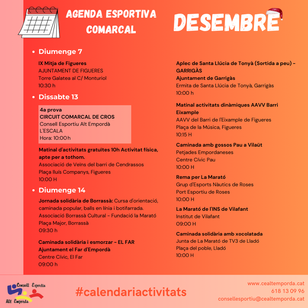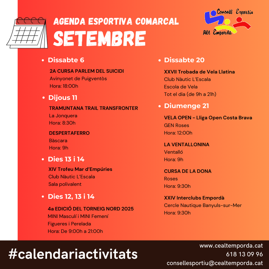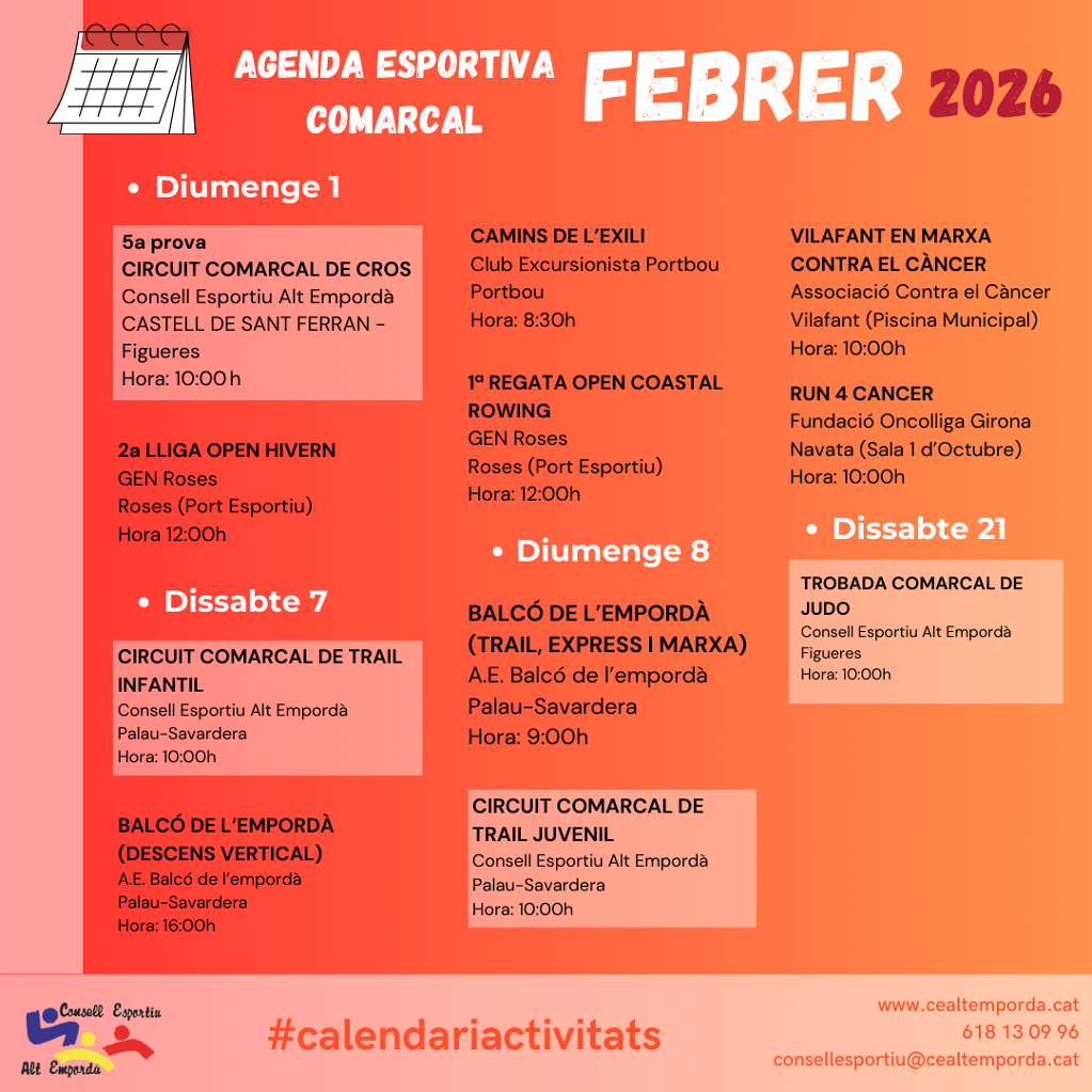 Teniu a la vostra disposició el calendari mensual d'activitats i esdeveniments esportius que es duen a terme dins el territori de l'Alt Empordà!