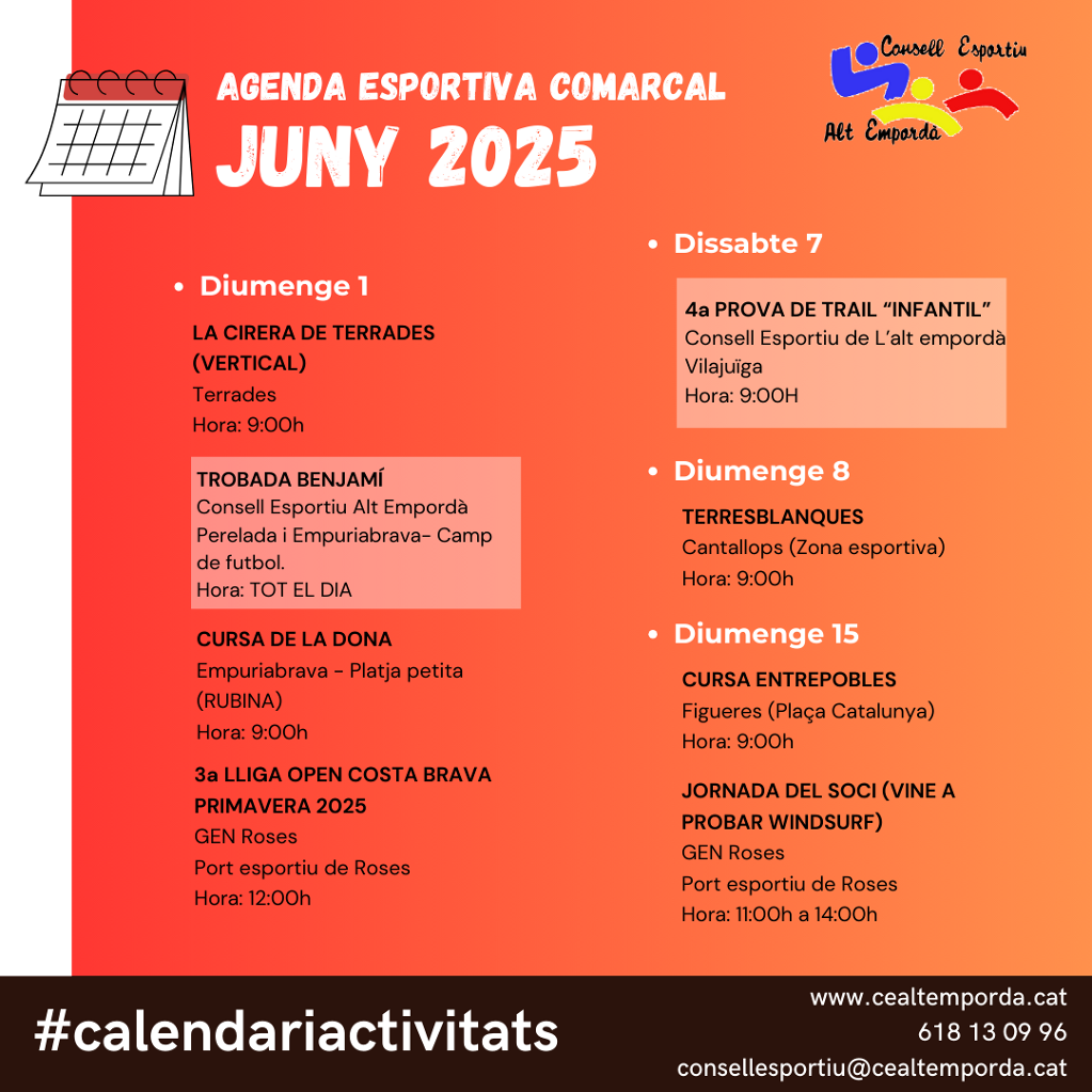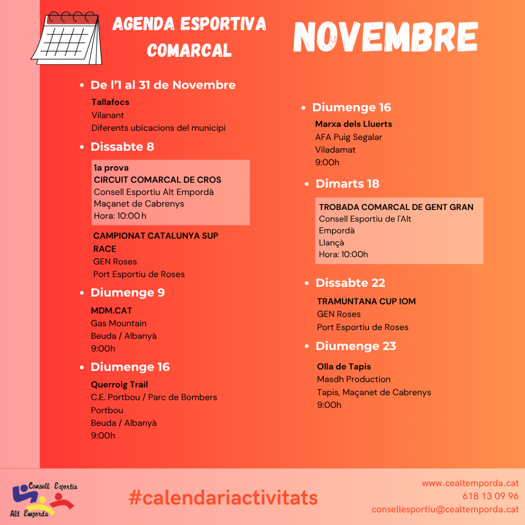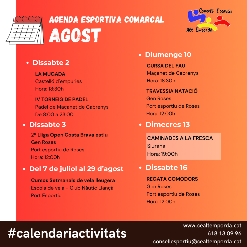 Teniu a la vostra disposició el calendari mensual d'activitats i esdeveniments esportius que es duen a terme dins el territori de l'Alt Empordà!