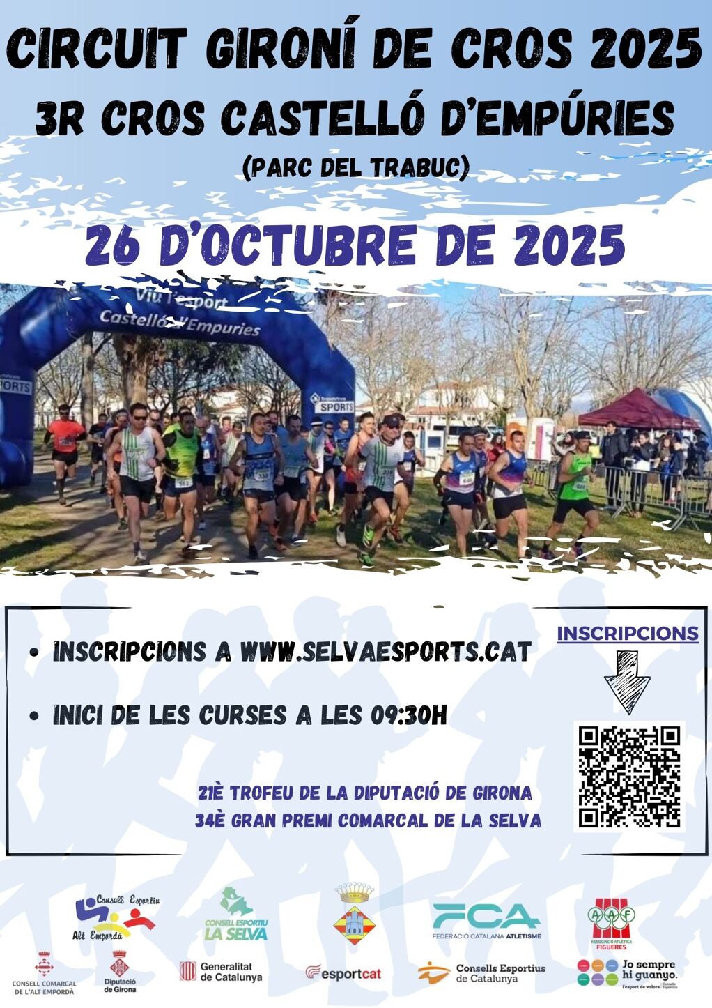 El diumenge 26 d'octubre de 2025, des del Consell Esportiu de l'Alt Empordà amb la col·laboració de l'Ajuntament de Castelló d'Empúries i el Consell Esportiu de La Selva, organitzem el 3r Cros al Parc del Trabuc del Municipi, un entorn ideal per la pràctica d'aquesta disciplina esportiva i que permet un bon seguiment de les diferents curses a tot el públic assistent.